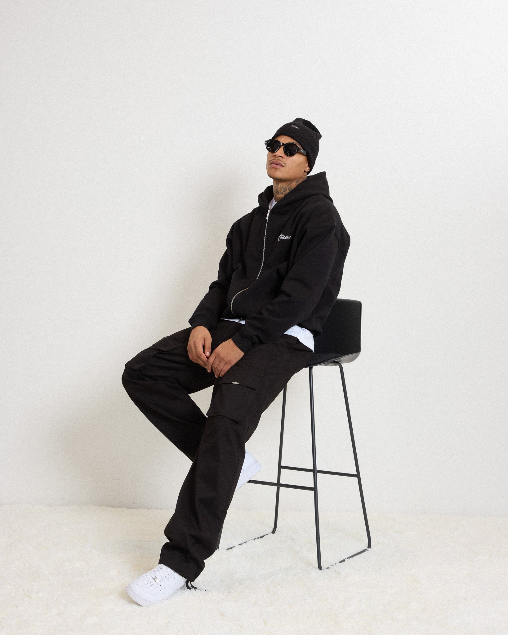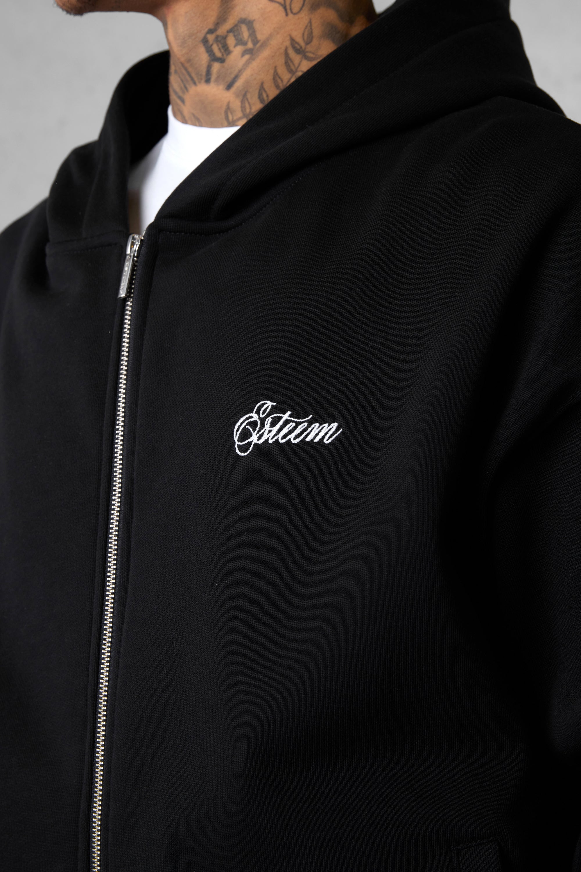 BLACK SIGNATURE OVERSIZED ZIP HOODIE