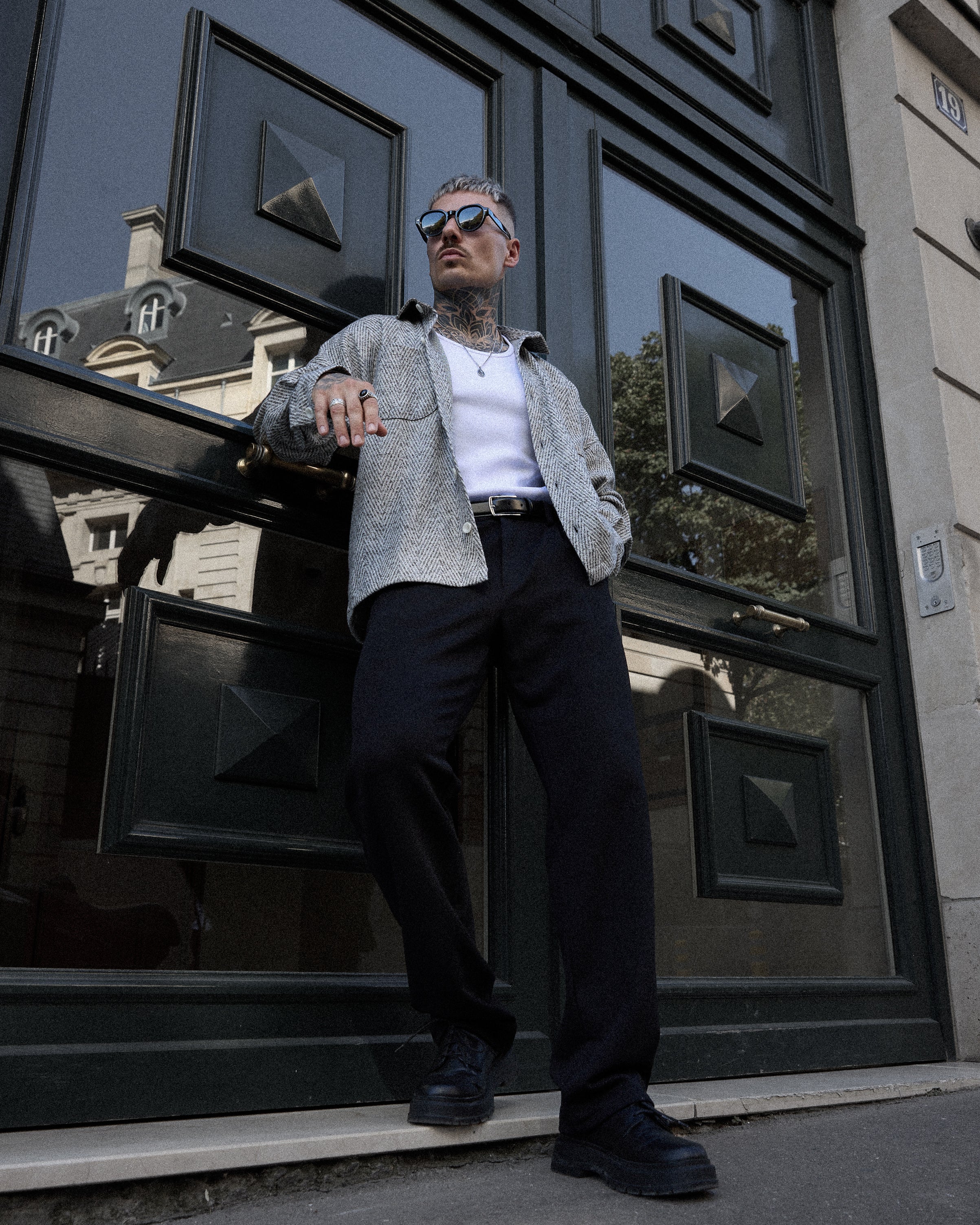 An oversized flannel shirt in a distinctive herringbone look – crafted from premium fabric with a bold texture that makes a statement.