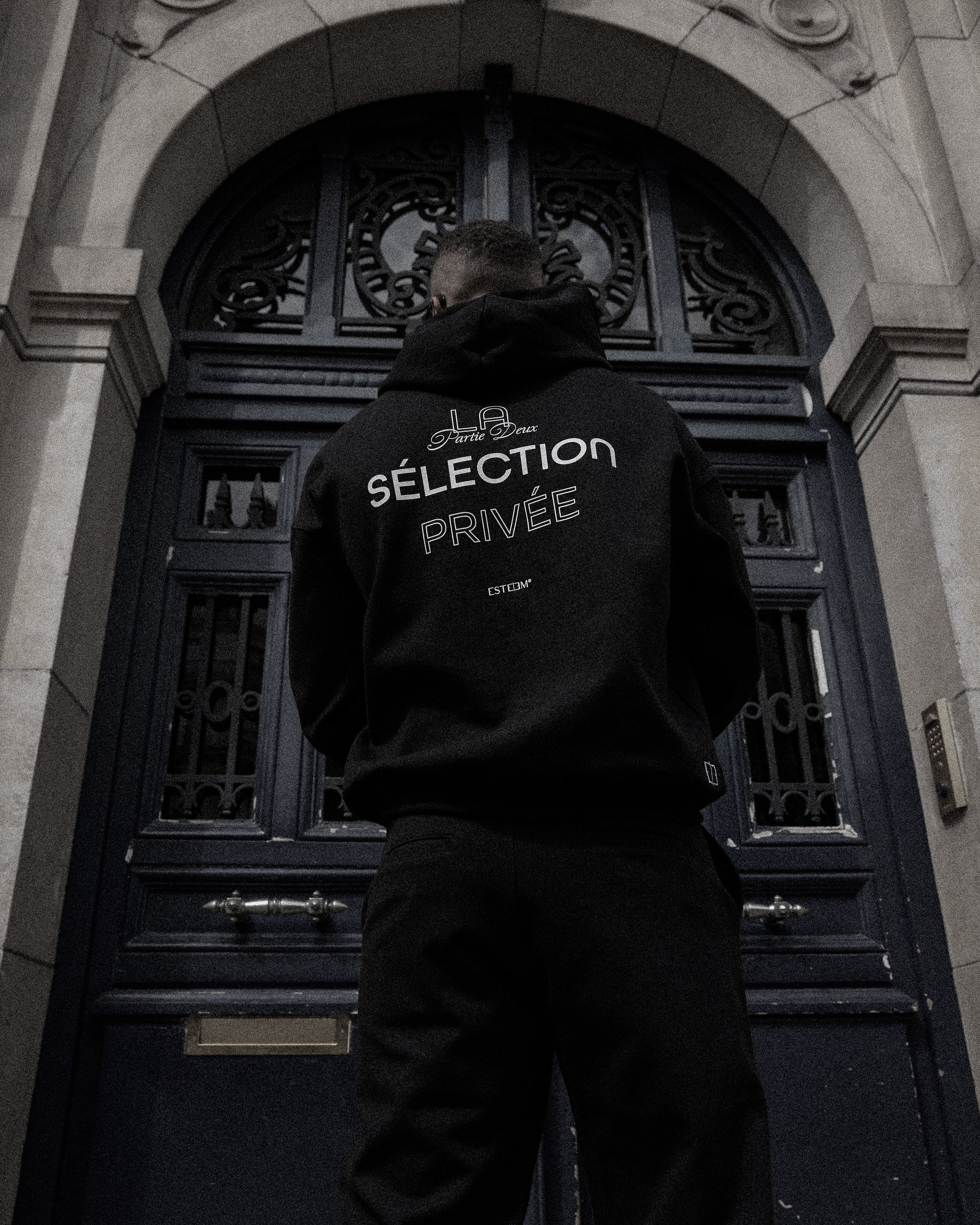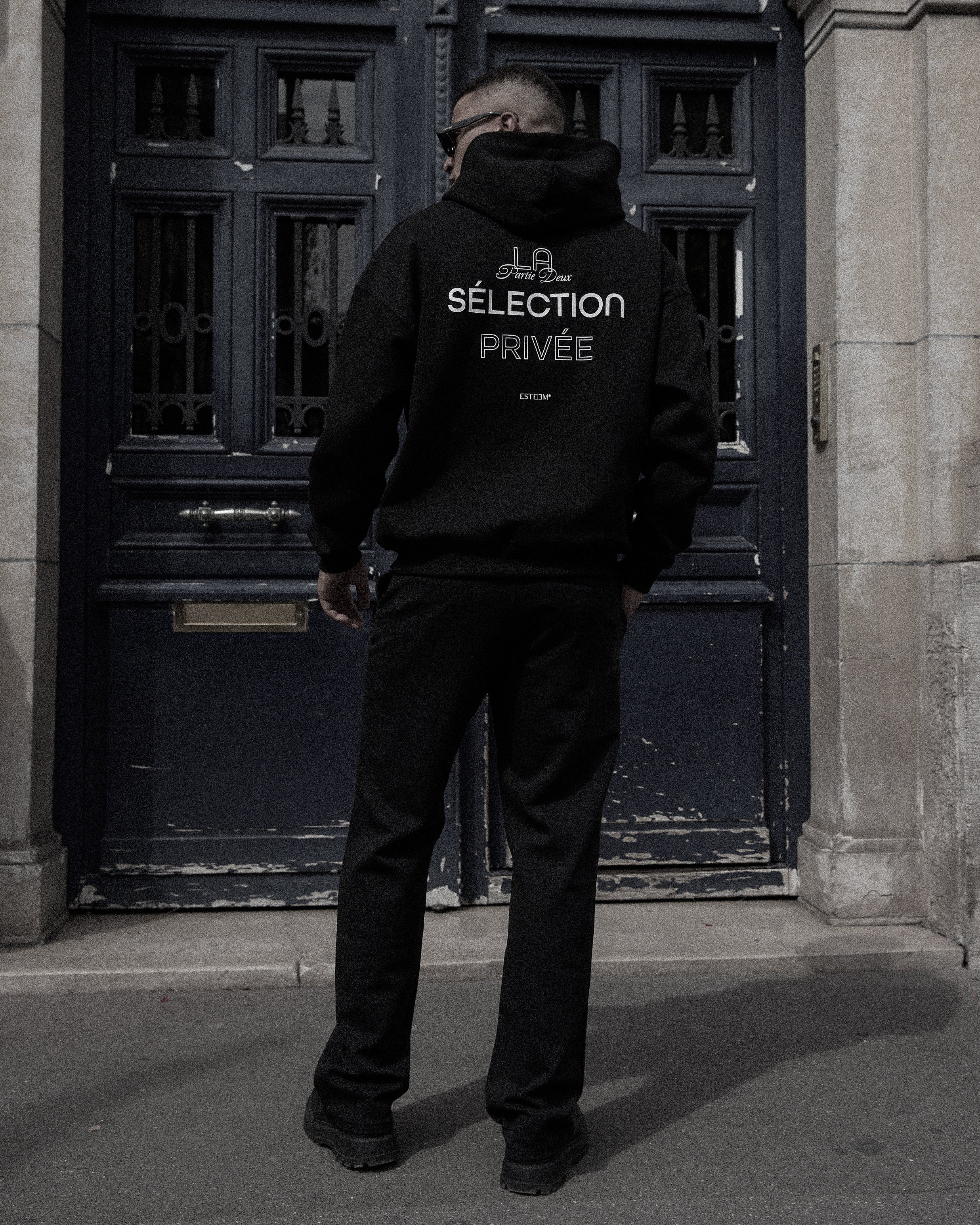“La Sélection Privée” – placed discreetly on the chest, staged large on the back.