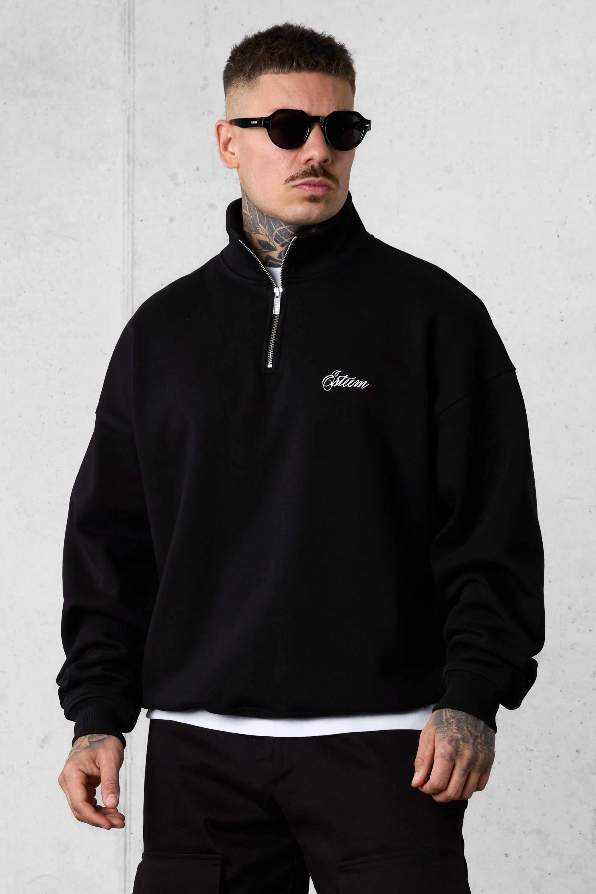 BLACK SIGNATURE OVERSIZED HALFZIP SWEATER
