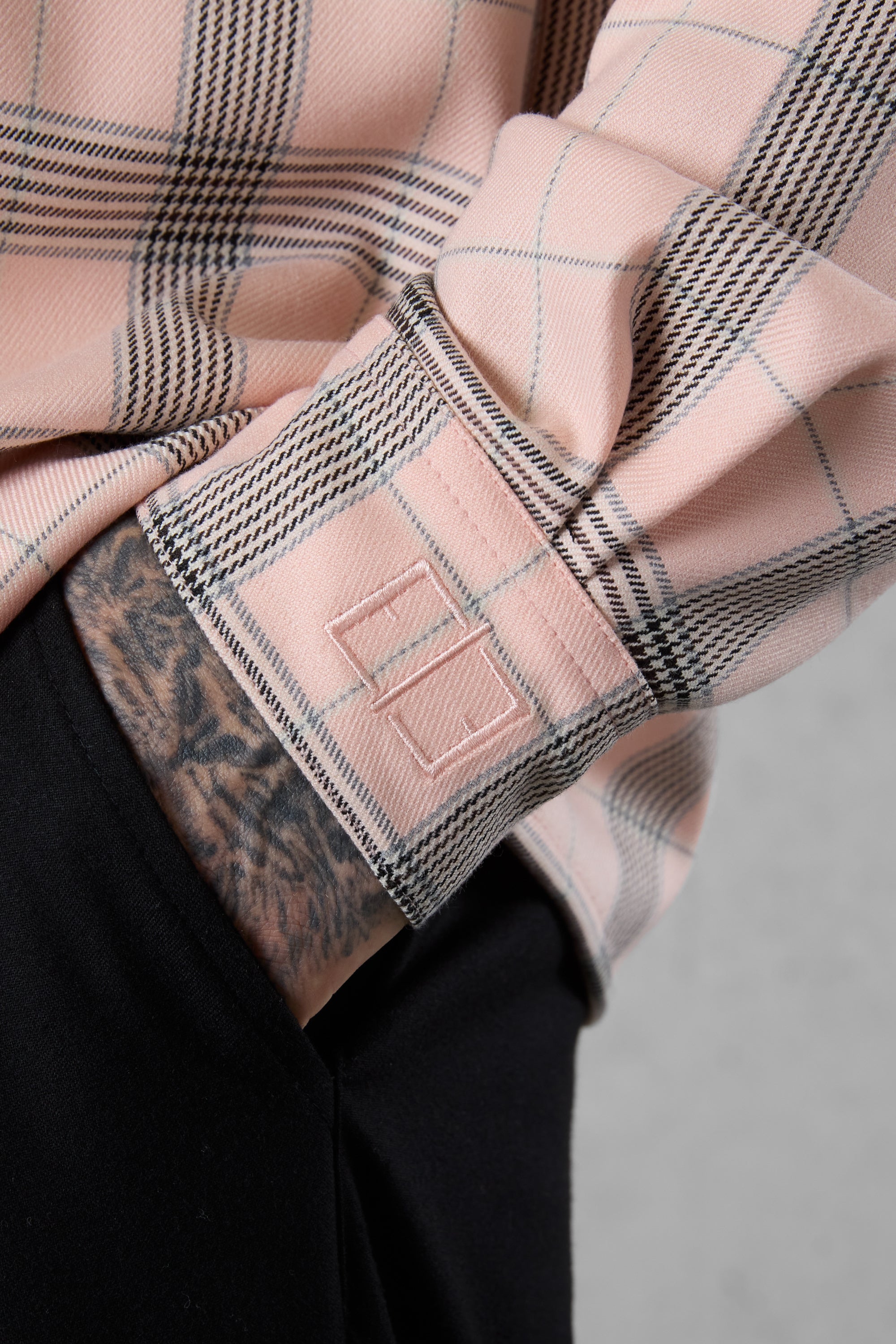 Oversized shirt made from an especially soft, comfortable-to-wear fabric. The combination of color and check pattern is an eye-catcher. A subtle embroidery on the sleeve cuff completes the design.