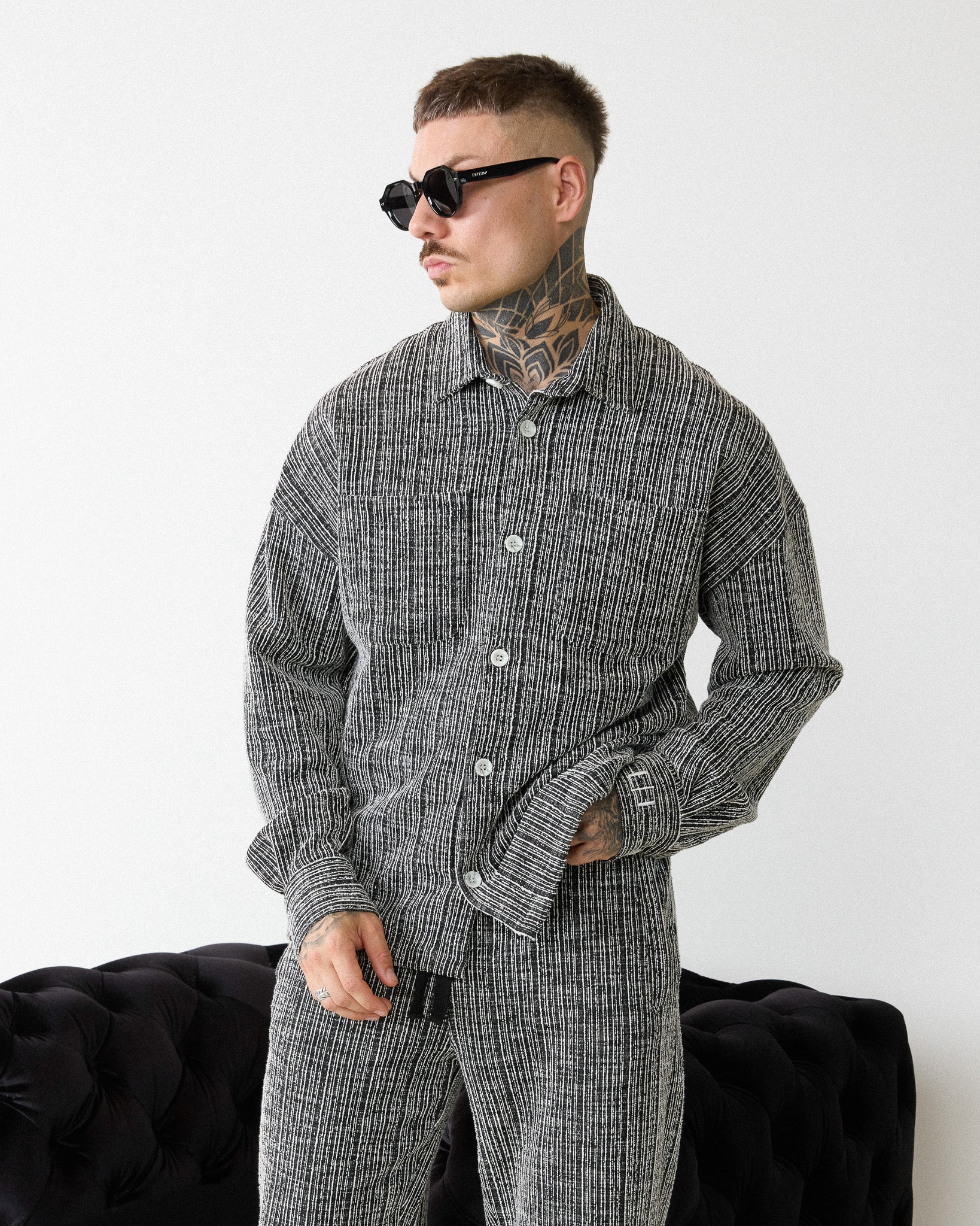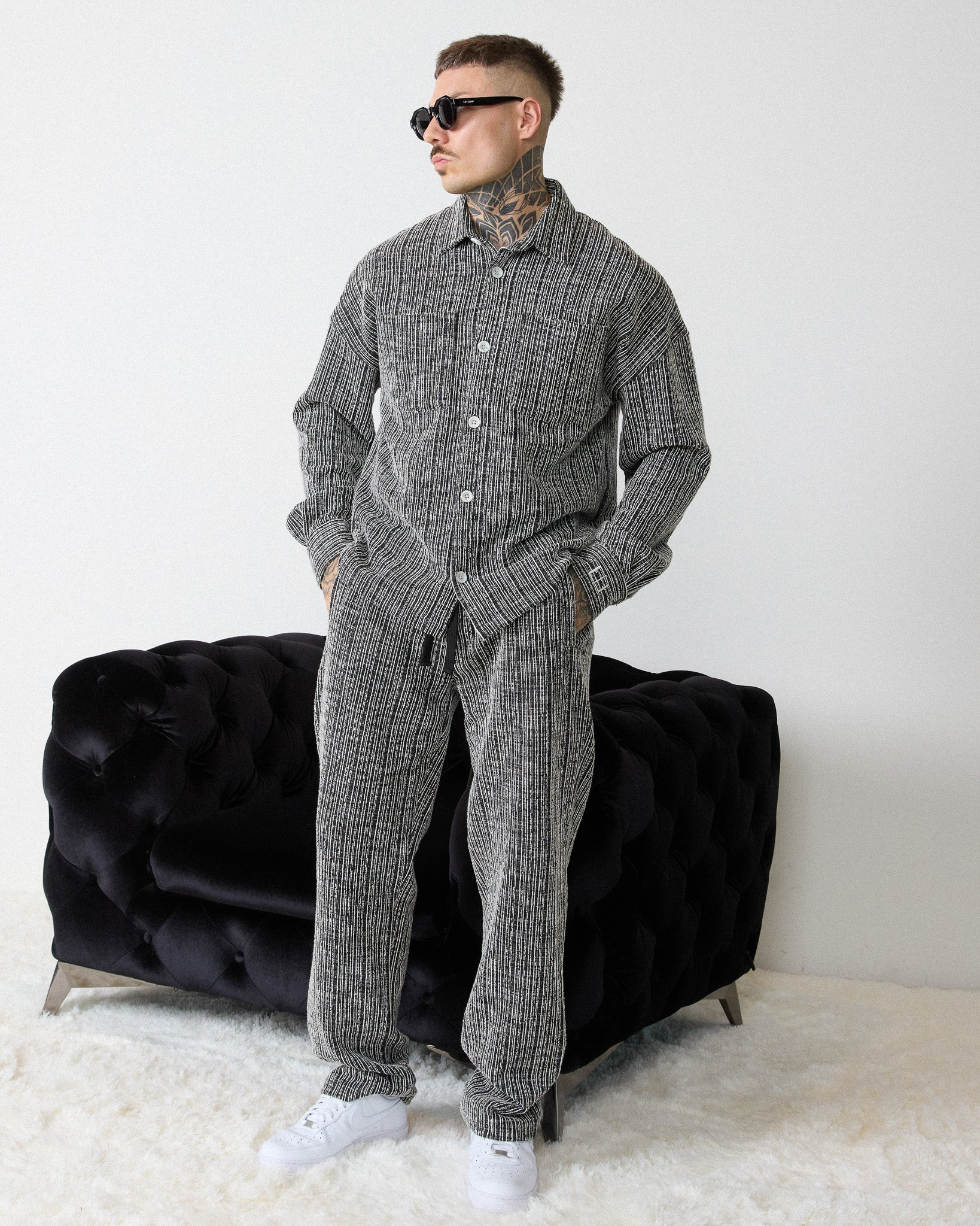 BLACK STRIPED JACQUARD LOOSE PANTS