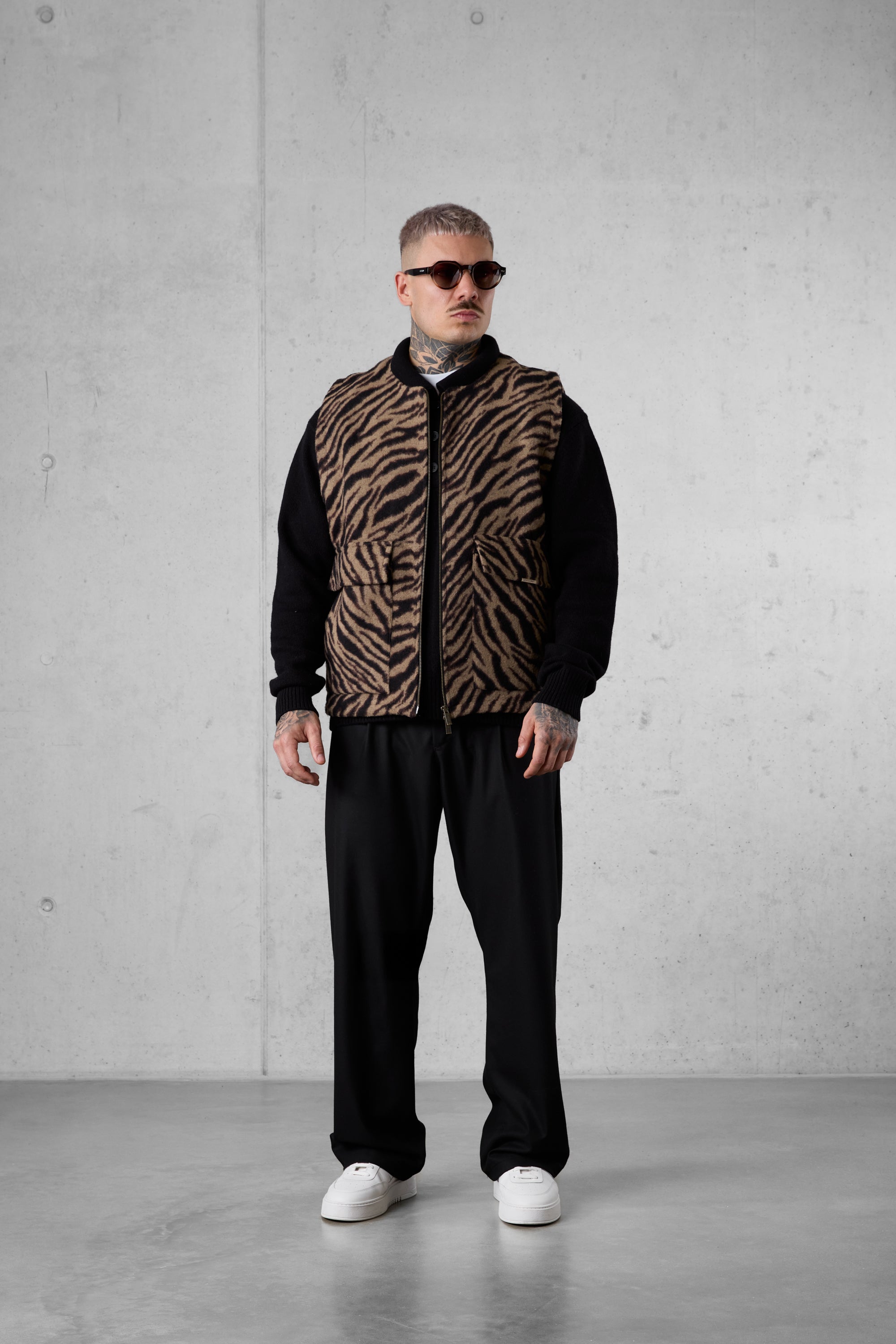 Gilet remarquable en flanelle brossée avec un motif zébré distinctif. L’inlay haut de gamme offre un confort exceptionnel.