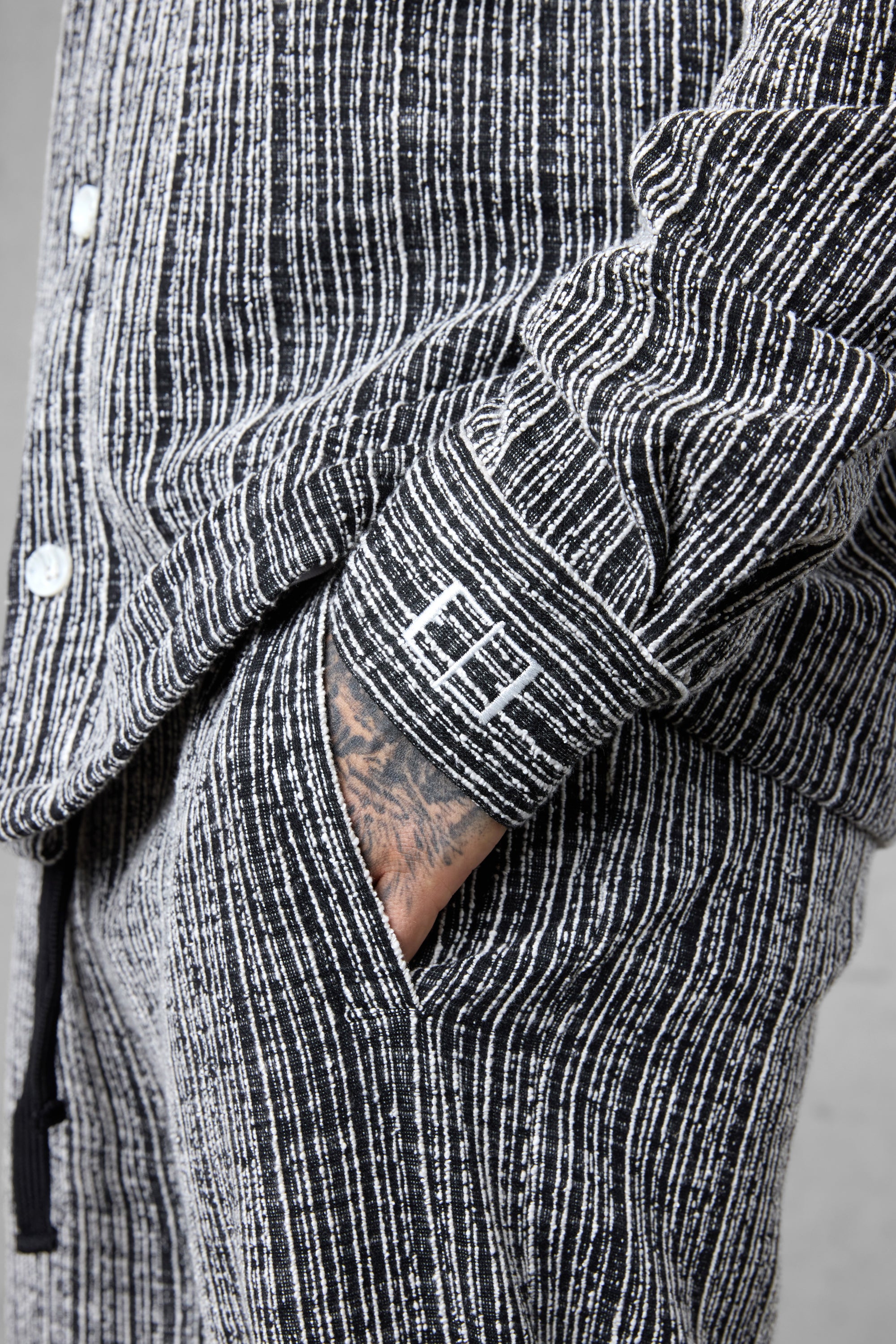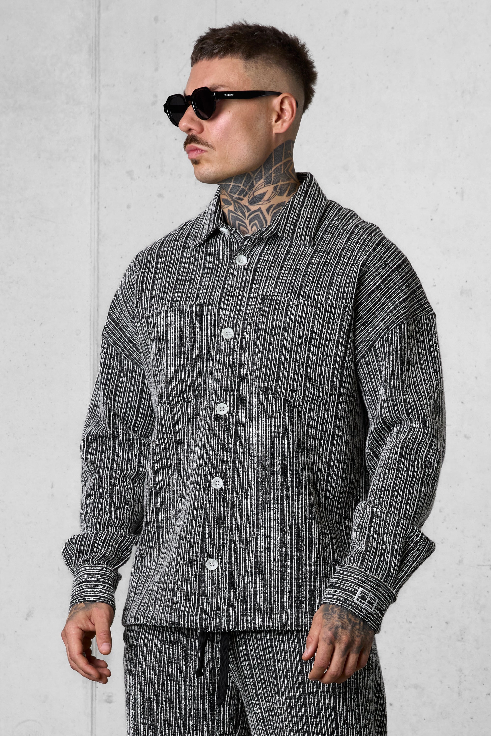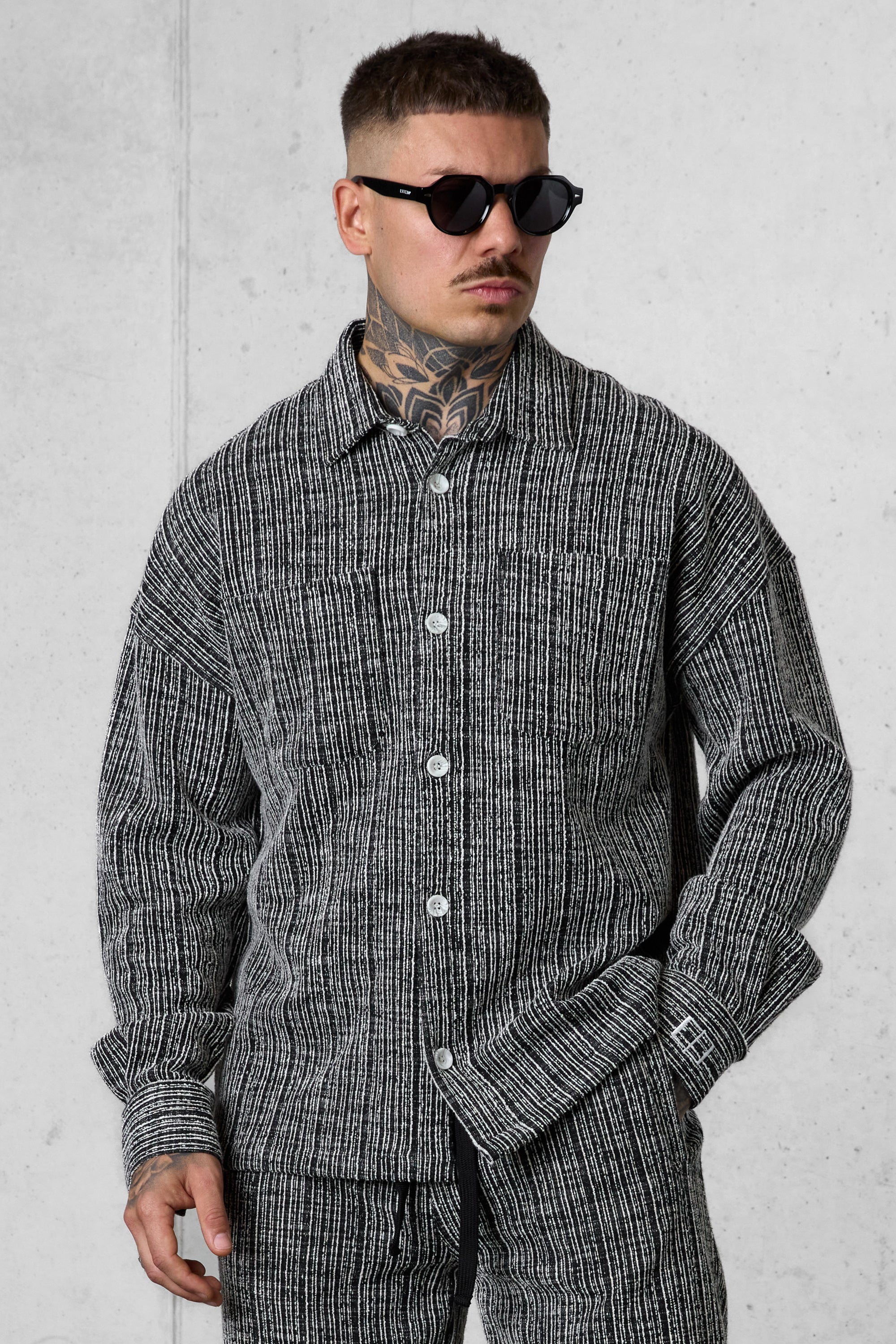 • BLACK STRIPED JACQUARD OVERSIZED SHIRT