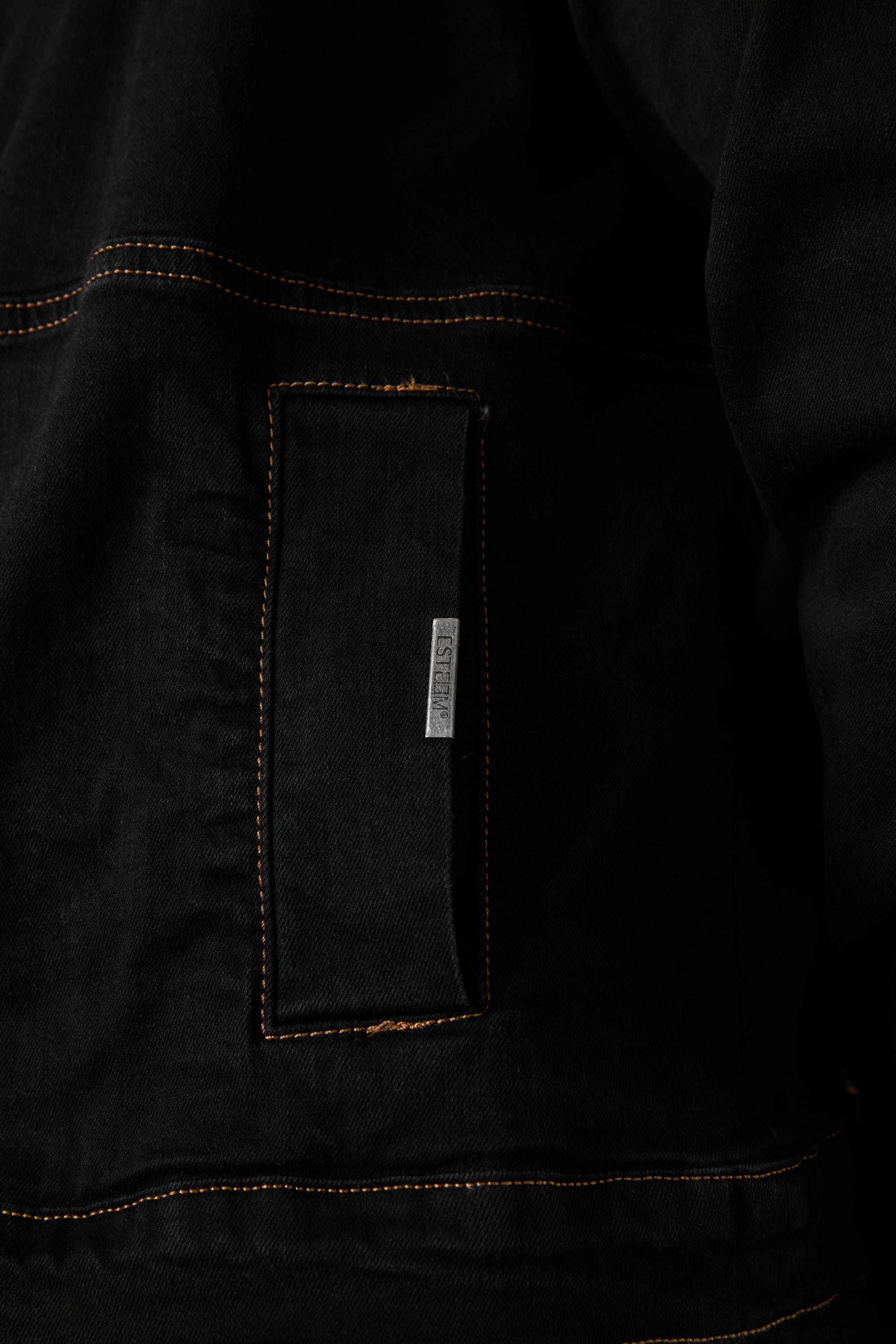 Cropped geschnittene Jeansjacke mit cleaner Waschung. Orangefarbene Kontrastnähte setzen einen markanten Akzent und veredeln das Design.